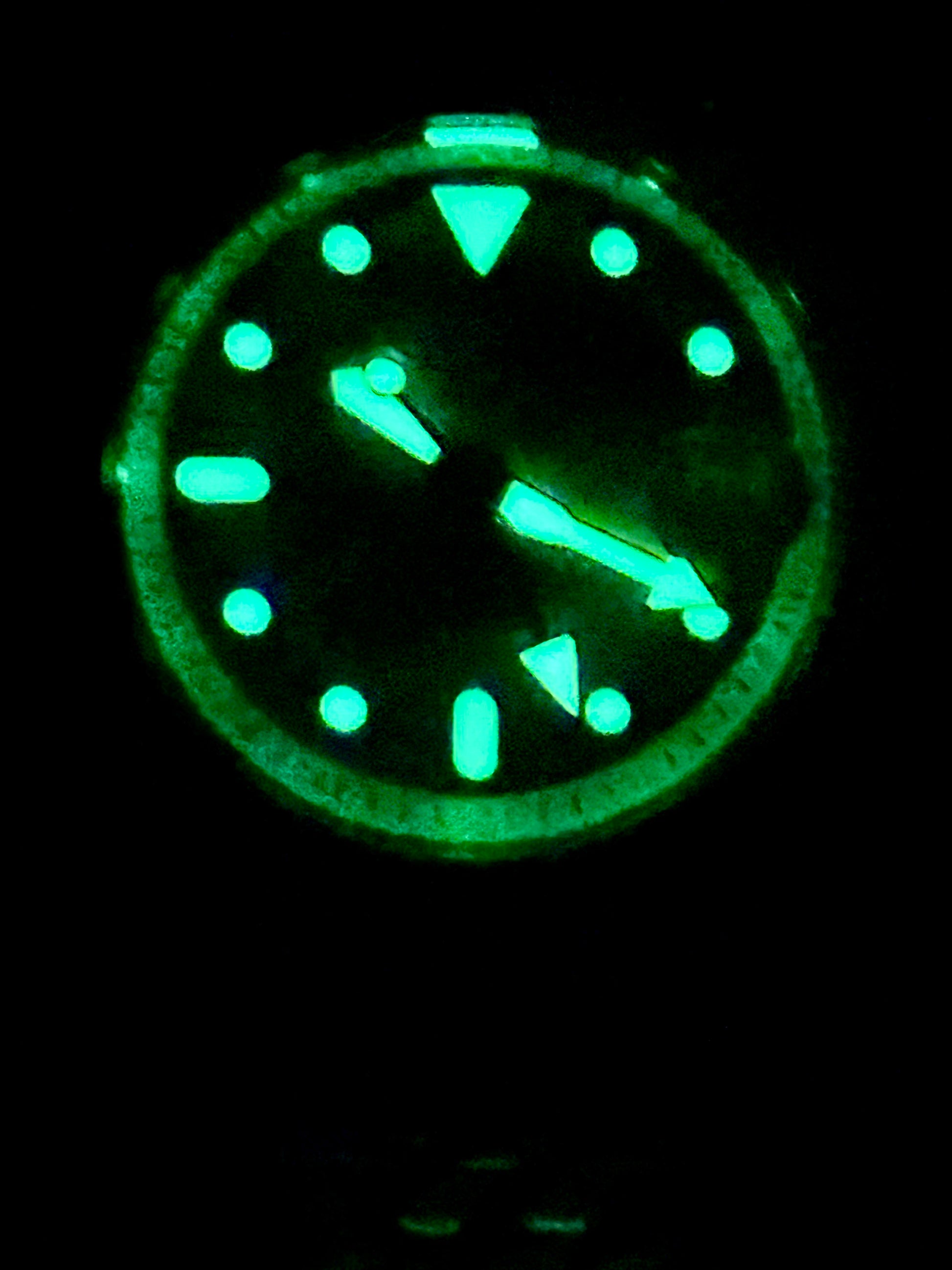 Dial: Champagne sunburst with applied indices, magnified date, LumiBrite hands & markers