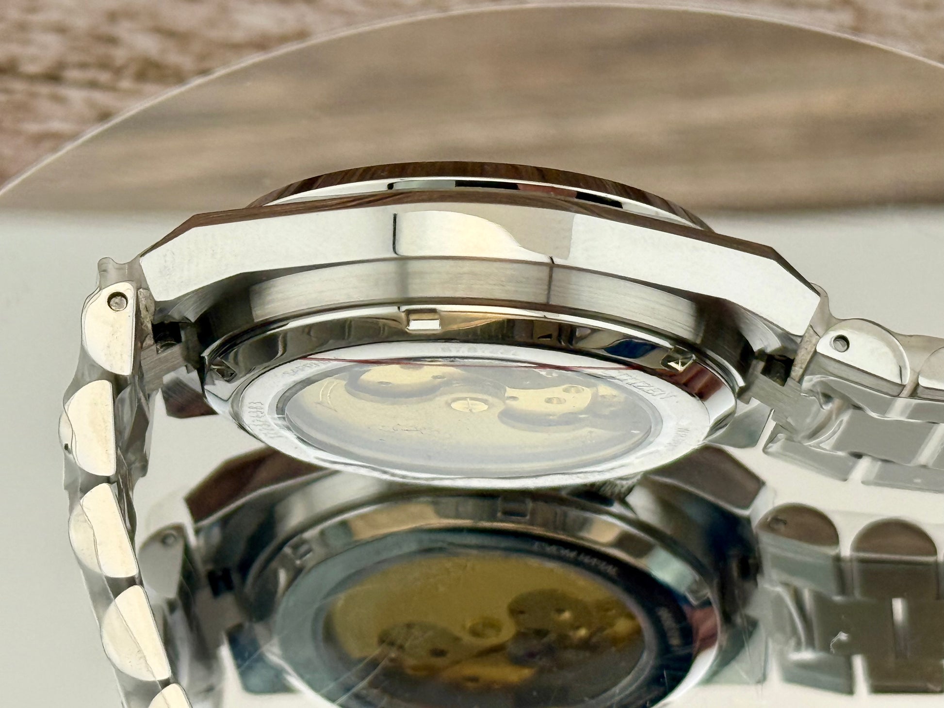 The dial’s icy white clarity catches light effortlessly, pairing with luminous markers and hands for all-day visibility. The brushed and polished steel surfaces give it a premium look that stands out without shouting. The nickname says it all — Silver Ice is cool, sleek, and unforgettable on the wrist.