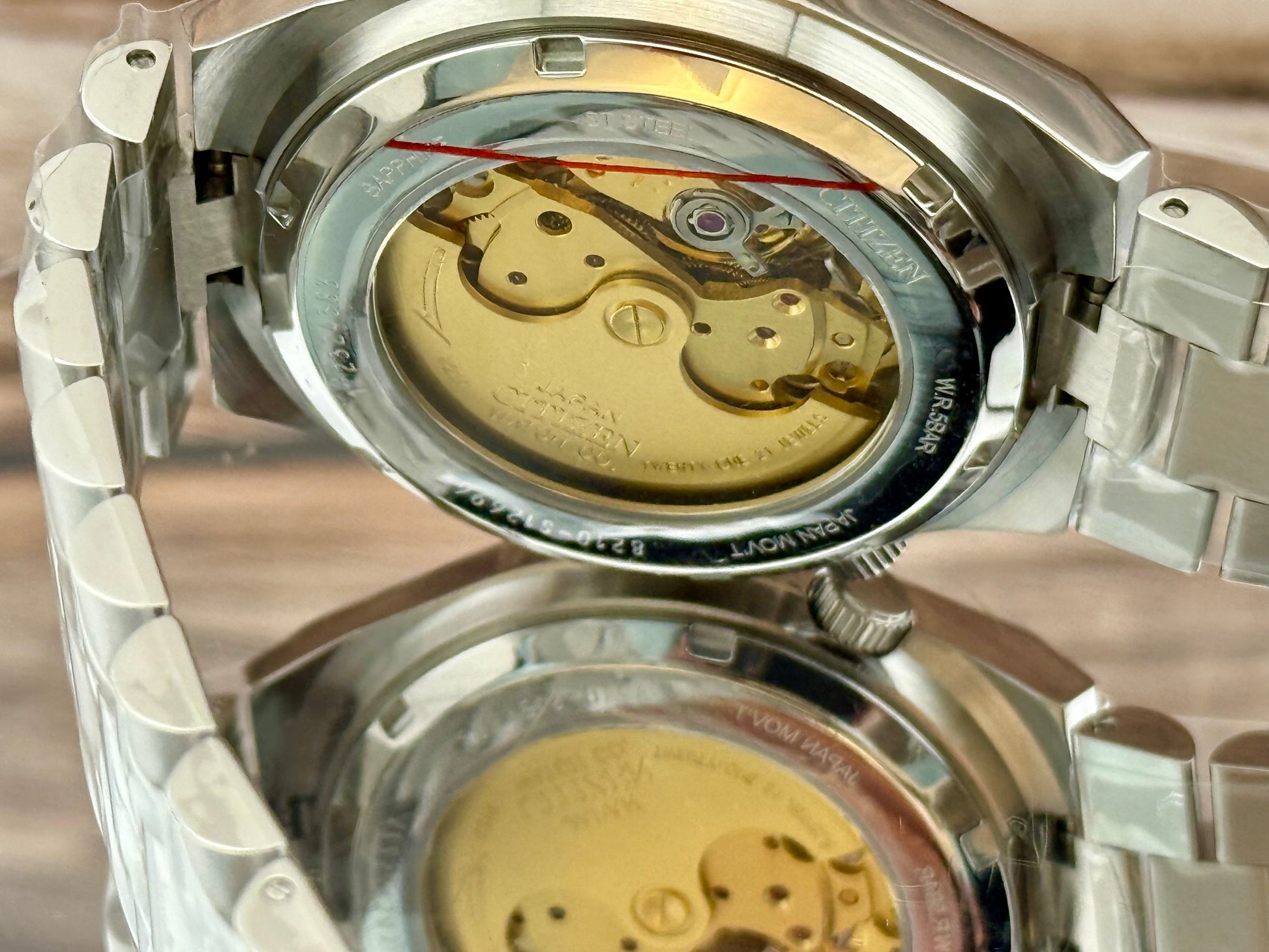 Movement: Citizen Caliber 8210 automatic; 21 jewels; ~40-42 hour reserve; hand-winding; hacking